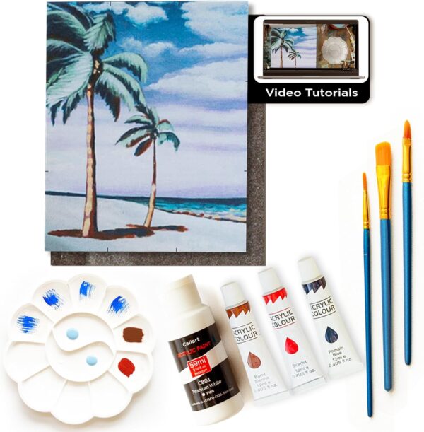 DIY Painting Class Kit for Adults with Video Tutorials: Learn to Paint Palm Paradise – How to Paint with Acrylics – Painting & Art Supplies – 9 Piece Acrylic Paint Set